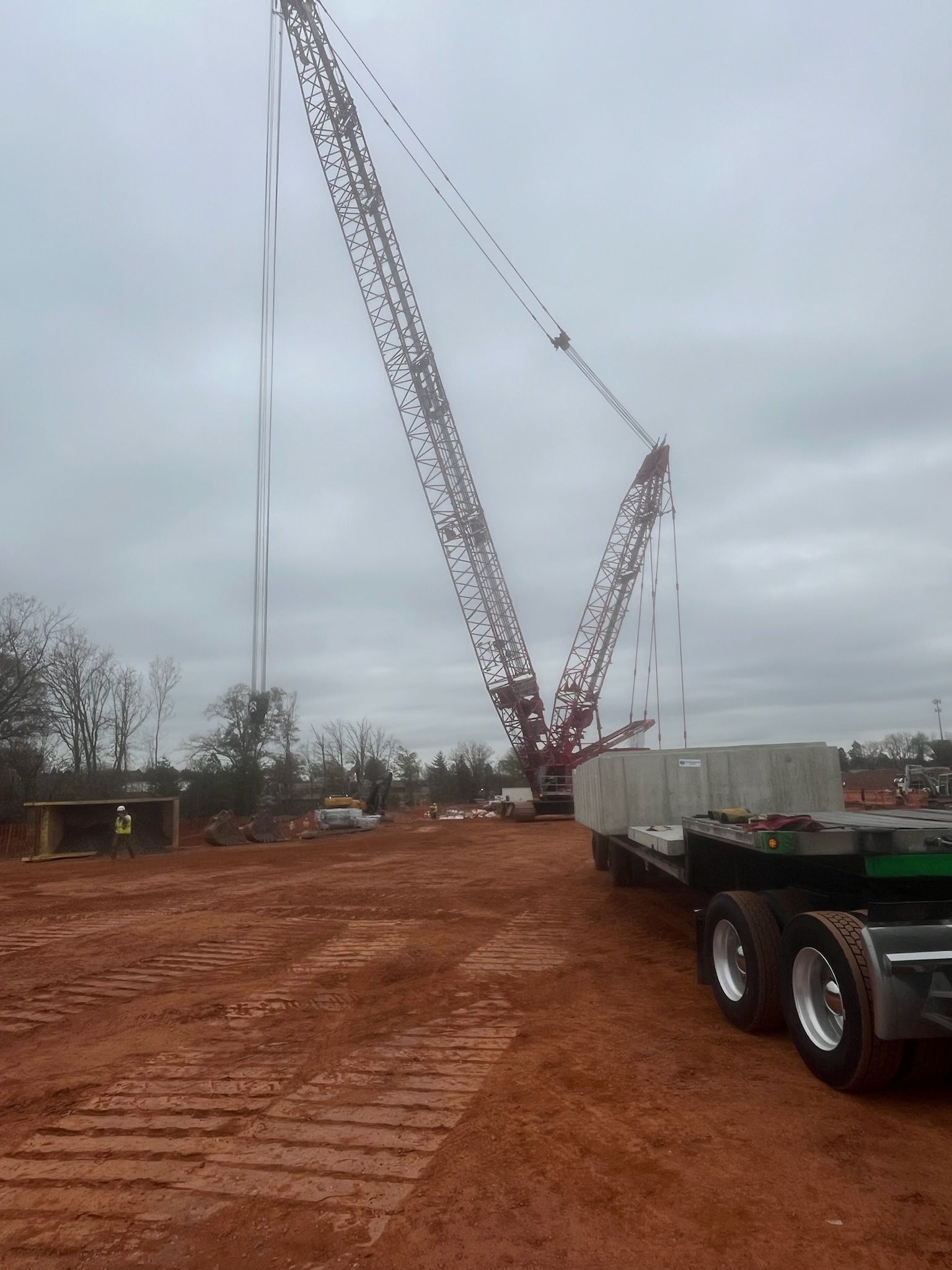 A large crane offloading a Precast Drainage Tank in Manasses VA